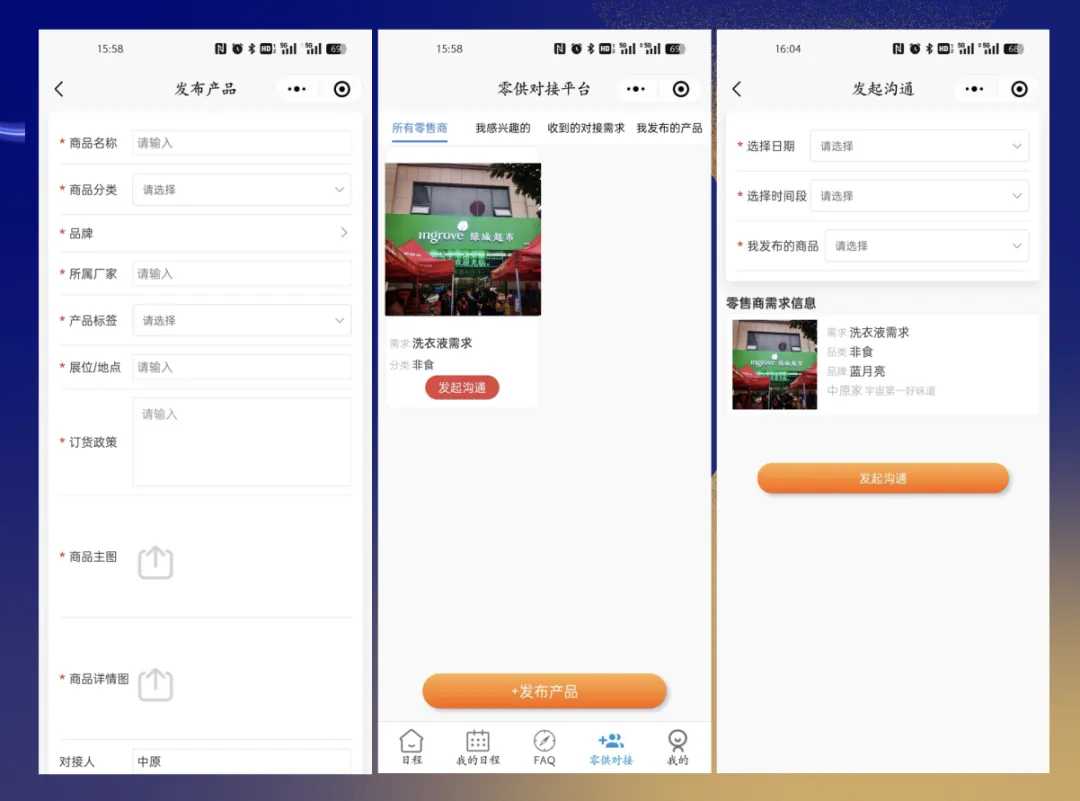 為了讓成員企業(yè)采購總監(jiān)們在大會前能夠實現(xiàn)充分了解,本次大會專門開發(fā)了幫助零售商和供應商高效對接的線上平臺,零售商可以填寫關于商品采購的需求,一鍵同步到需求廣場。供應商可以發(fā)布自己的商品及政策,一鍵發(fā)布到供應大廳。做到大會前線上提前了解,心中有數(shù),大會現(xiàn)場直接對接,省心高效。